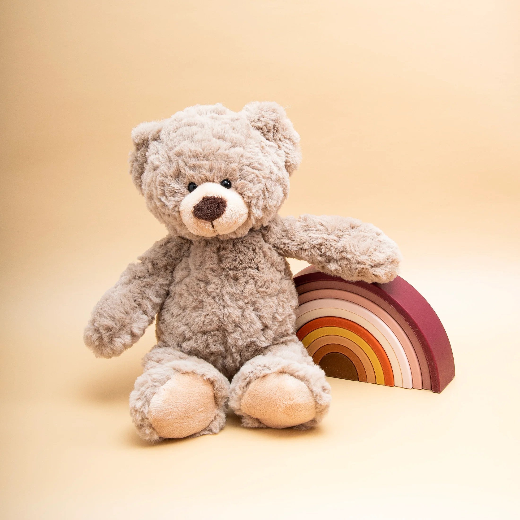 Meet Billy the Bear, a lovable friend from Petite Vous. Made from luxuriously soft plush with a gentle weighted base, Billy is destined to be hugged, loved, and treasured for years to come. His sweet face, classic bear shape, and perfectly huggable size make him an ideal companion for birthdays, baby showers, or everyday cuddles.